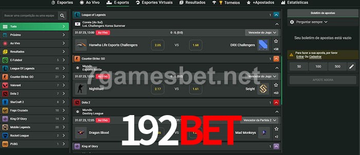 A aposta 192Bet oferece aos jogadores a experiência mais conveniente de apostas em eSports!